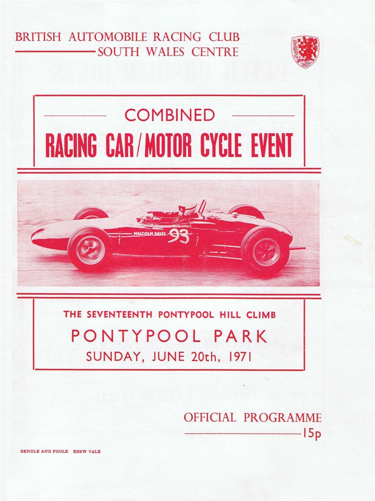 Programme cover of Pontypool Park Hill Climb, 20/06/1971