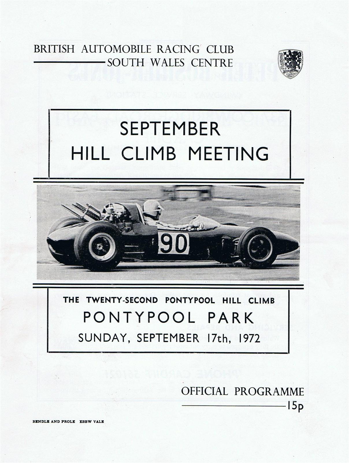 Programme cover of Pontypool Park Hill Climb, 17/09/1972