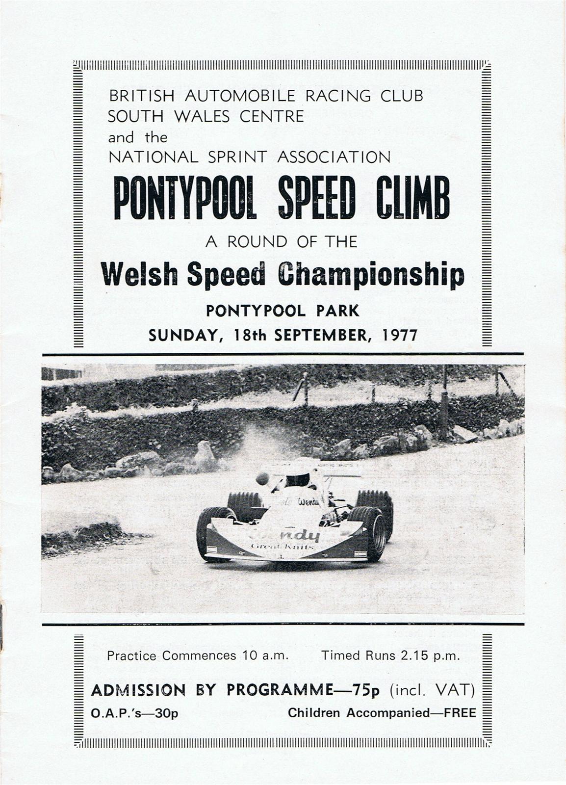 Programme cover of Pontypool Park Hill Climb, 18/09/1977